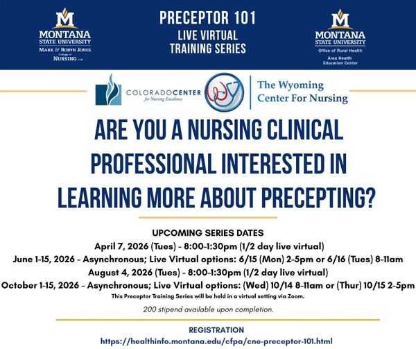 This education is brought to us by the Montana Area Health Education Center as part of the HRSA Region 8 Preceptor and Faculty Grant.